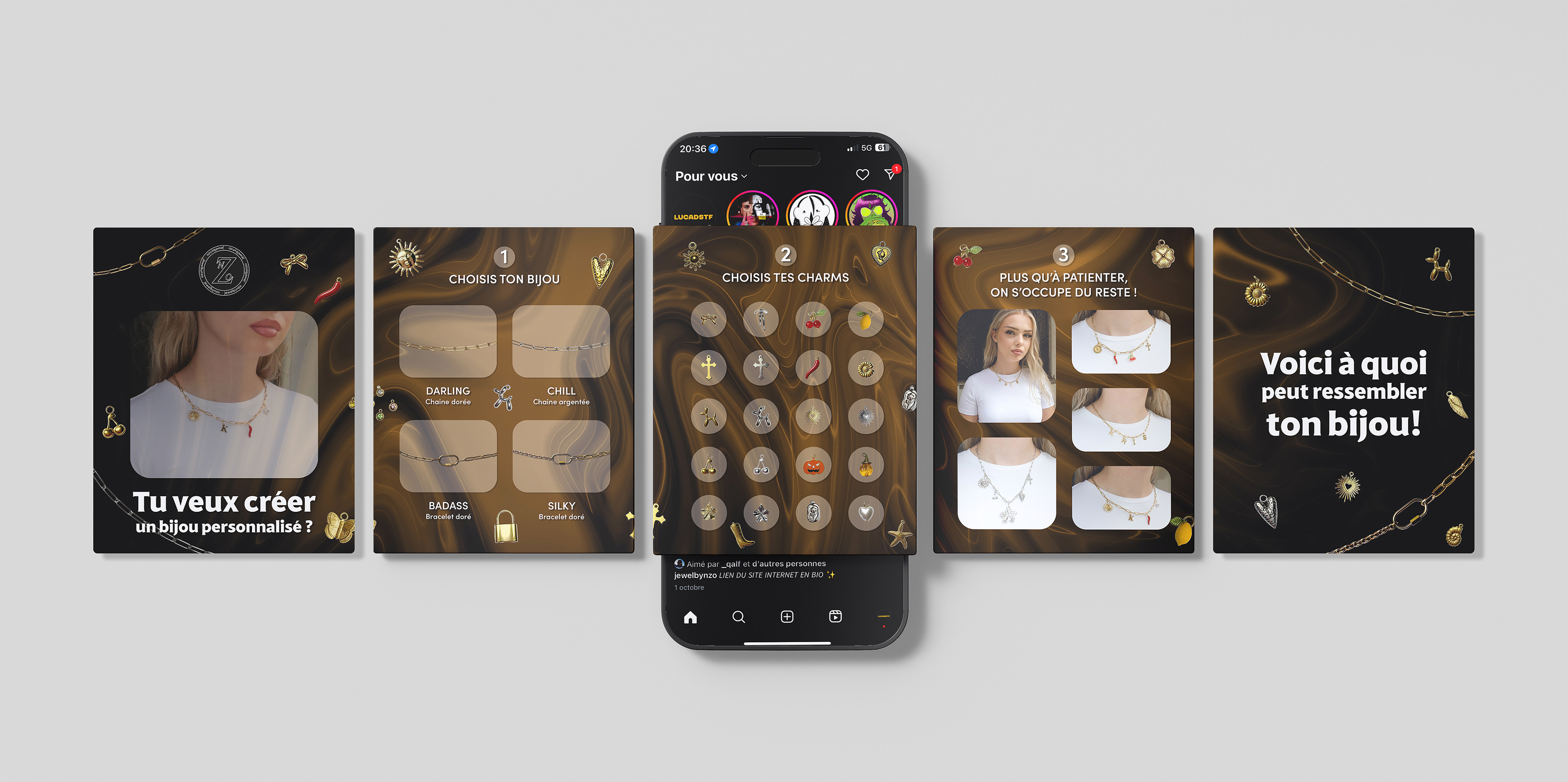J’ai eu l’opportunité de collaborer avec Enzo, créateur de la marque de bijoux jewelbynzo, sur la mise en valeur de ses collections pour les réseaux sociaux. Dans le cadre de ce projet, j’ai conçu un carrousel Instagram destiné à présenter ses créations de manière élégante et engageante. J’ai également conçu le site web de sa boutique en ligne, en veillant à offrir une expérience fluide, esthétique et adaptée à l’univers de la marque, et réalisé un travail minutieux de détourage et de correction d’images sur les différents charms et pendentifs pour leur intégration sur ce site. Cette expérience m’a permis d’allier sens du détail, esthétique visuelle et compétences web pour sublimer les produits de jewelbynzo et renforcer sa présence digitale.
